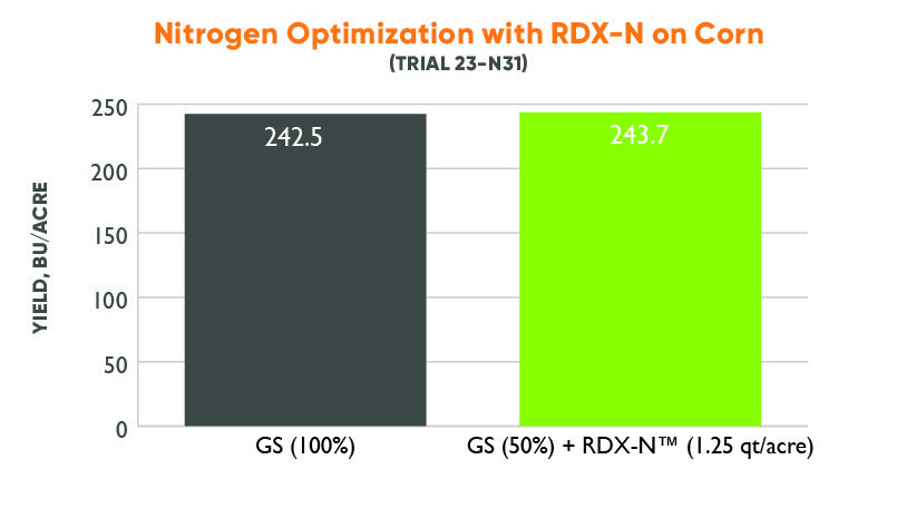 Nitrate nitrogen is responsible for 80% of negative charge in plants—it stalls growth and limits yield potential. The key is balance.Warren County, Indiana – September 2025 | In this trial, the grower replaced 50 lbs. of nitrogen with 32 oz of RDX-N.