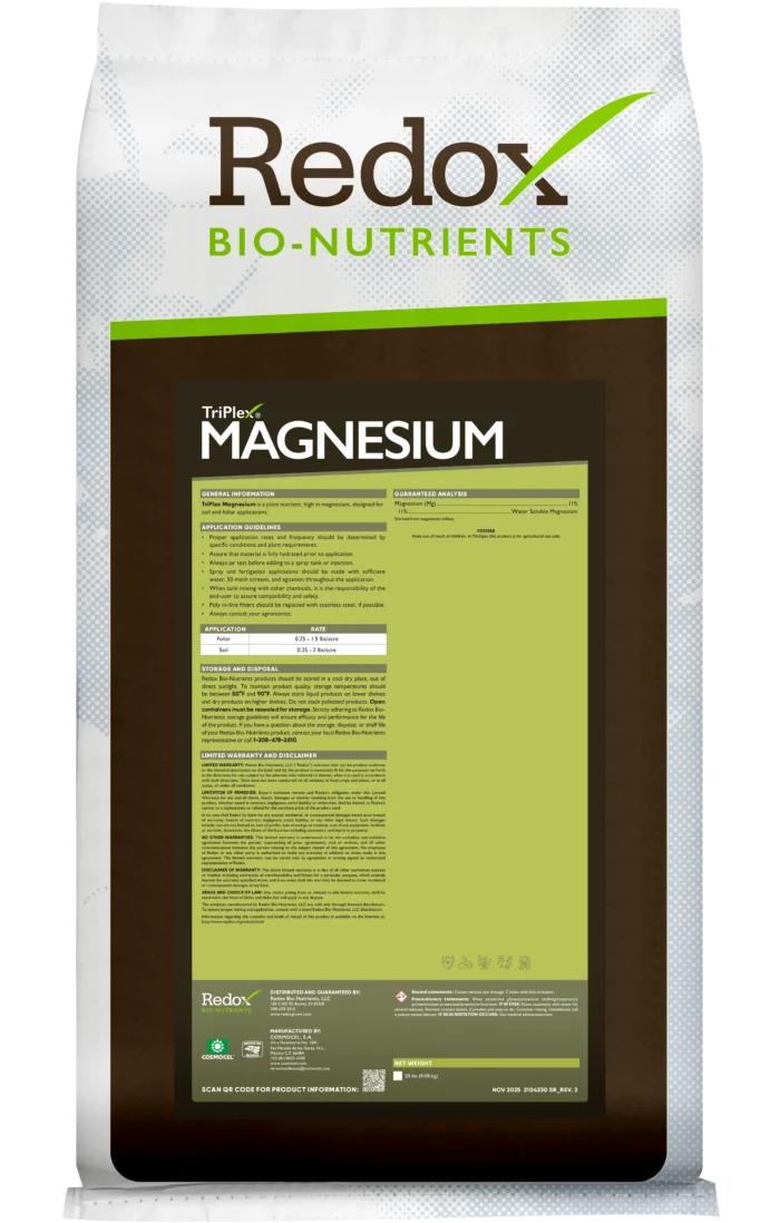 TriPlex Magnesium is formulated to maximize magnesium nutrition in crops, improving uptake and mobility through L-amino acid chelation. The combination of Magnesium and Redox Active Molecules supports root activity, nutrient efficiency, and overall plant vigor.