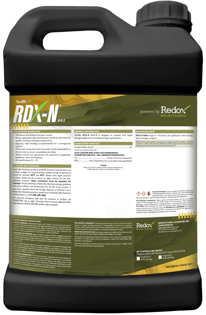 This patented, plant botanical extract formulation is designed to enhance the plant’s natural metabolism to improve nitrogen efficiency from the inside out, supporting consistent quality and playability across every turf area. You’ll see deeper, longerlasting color and improved efficiency across your program, and when nitrogen rates are managed appropriately, TurfRx RDX-N helps reduce clippings while maintaining high-quality playing surfaces.